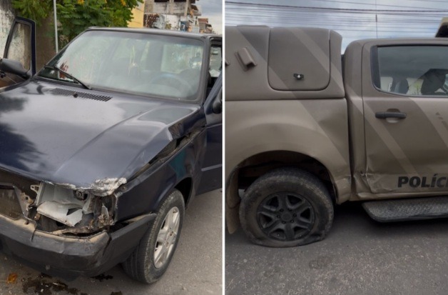 Quatro pessoas estavam no carro e na viatura havia três policiais, conforme o Giro Ipiaú. Ninguém ficou ferido no acidente.