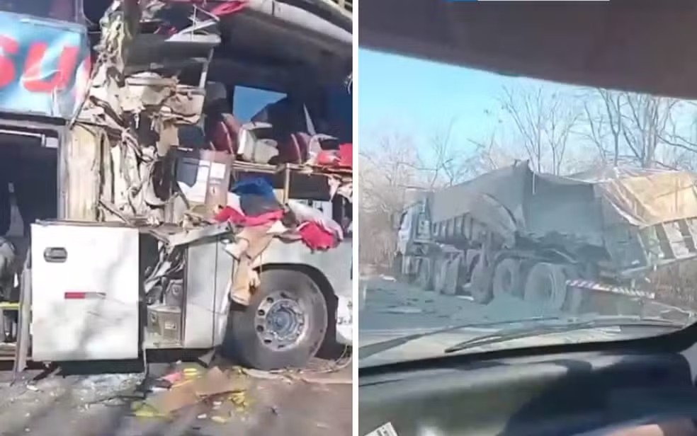 De acordo com os agentes, o choque entre os veículos ocorreu por volta das primeiras horas da manhã. Ainda não há detalhes sobre as causas do acidente, mas o impacto da batida foi tão forte que a lateral do ônibus ficou completamente destruída. Imagens registradas no local mostram destroços espalhados pela pista e parte da estrutura do coletivo retorcida.