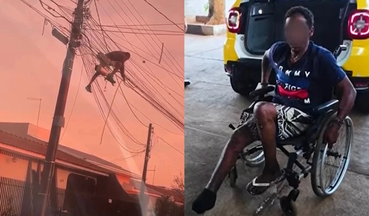 Um cadeirante foi flagrado furtando fios de energia de um poste no Jardim Alvorada, em Maringá, no Noroeste do Paraná. Nas imagens registradas por um morador, é possível ver a cadeira de rodas “estacionada”, enquanto o homem aparece pendurado no poste, retirando a fiação elétrica.