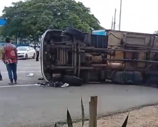 Um caminhão baú tombou na manhã desta terça-feira (20) na rodovia BA-263, em Itapetinga, no sudoeste da Bahia. O acidente ocorreu por volta das 8h, em frente ao supermercado Assaí.
