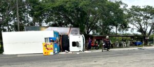 Caminhão que saiu de Vitória da Conquista tomba na BA-263, em Itapetinga