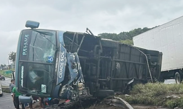Grave acidente: ônibus da Cidade Sol tomba na BR-324; veja vídeo