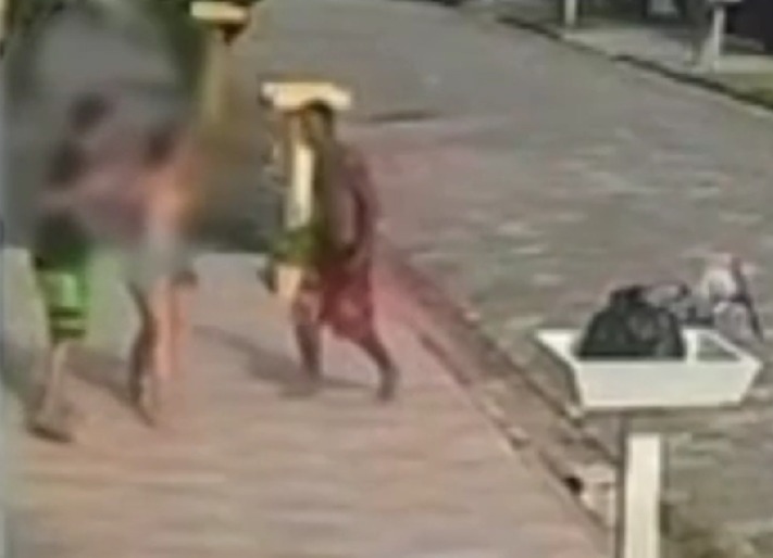 A ação criminosa foi registrada por câmeras de monitoramento, que mostram o momento em que as vítimas são surpreendidas pelo agressor.