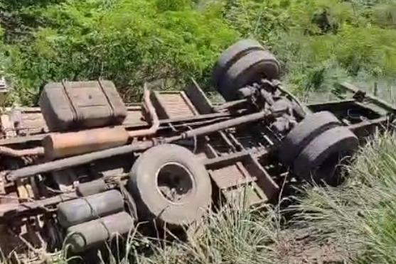 Imagens impressionantes: caminhão tomba com três trabalhadores na BA-263, em Itapetinga