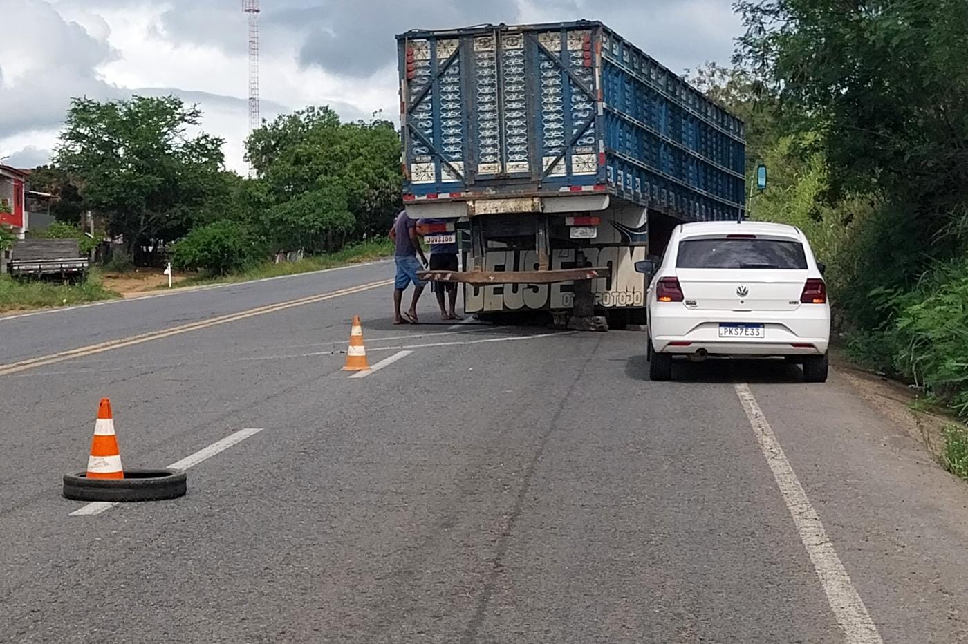 Uma carreta que transportava bois apresentou problemas mecânicos enquanto trafegava no sentido Itororó e ficou parcialmente atravessada na rodovia BA-263, no perímetro urbano de Itapetinga.
