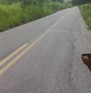 Perigo na rodovia que dá acesso a Itapetinga: cratera se abre e assusta motoristas