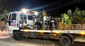 Segundo o relato da polícia, a denúncia dava conta de uma aparelhagem de som com volume muito alto. Ao chegar no local, a equipe abordou os suspeitos e apreendeu quatro motocicletas e um veículo Fiat Punto, além de um reboque com aparelho sonoro.
