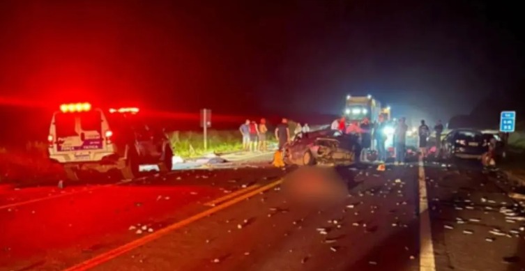 Segundo a PRF, o acidente ocorreu por volta de 0h05 e envolveu quatro veículos. Uma caminhonete RAM 2500, que trafegava no sentido norte da rodovia, colidiu na traseira de um Fiat Palio onde estavam as vítimas: um homem de 43 anos, uma mulher de 39 e duas crianças, de 7 e 10 anos.