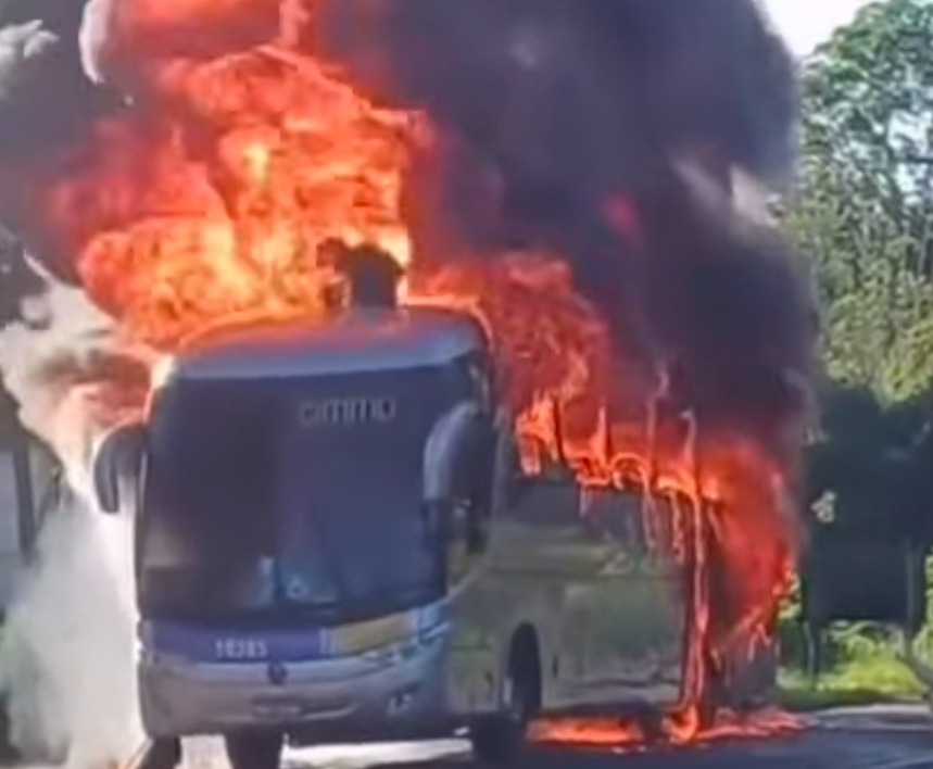 As chamas consumiram rapidamente o ônibus. Ainda não há informações sobre o que causou o incêndio.